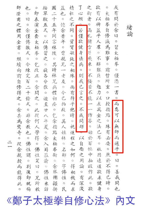 本課程所教授鄭子37式太極拳,開創宗師鄭曼青大師,他所撰寫的《鄭子太極拳自修心法》正是一部旨在讓學習者透過書籍自學太極拳的著作。他在書中強調,即使無法面對面接受老師的指導,也能夠依據書中的指引自學成功。既然在沒有網絡的時代,一本書就能讓學習者無師自通,現今透過先進的線上教學平台,結合視覺化的教學影片,更能輕鬆掌握太極拳的精髓。